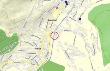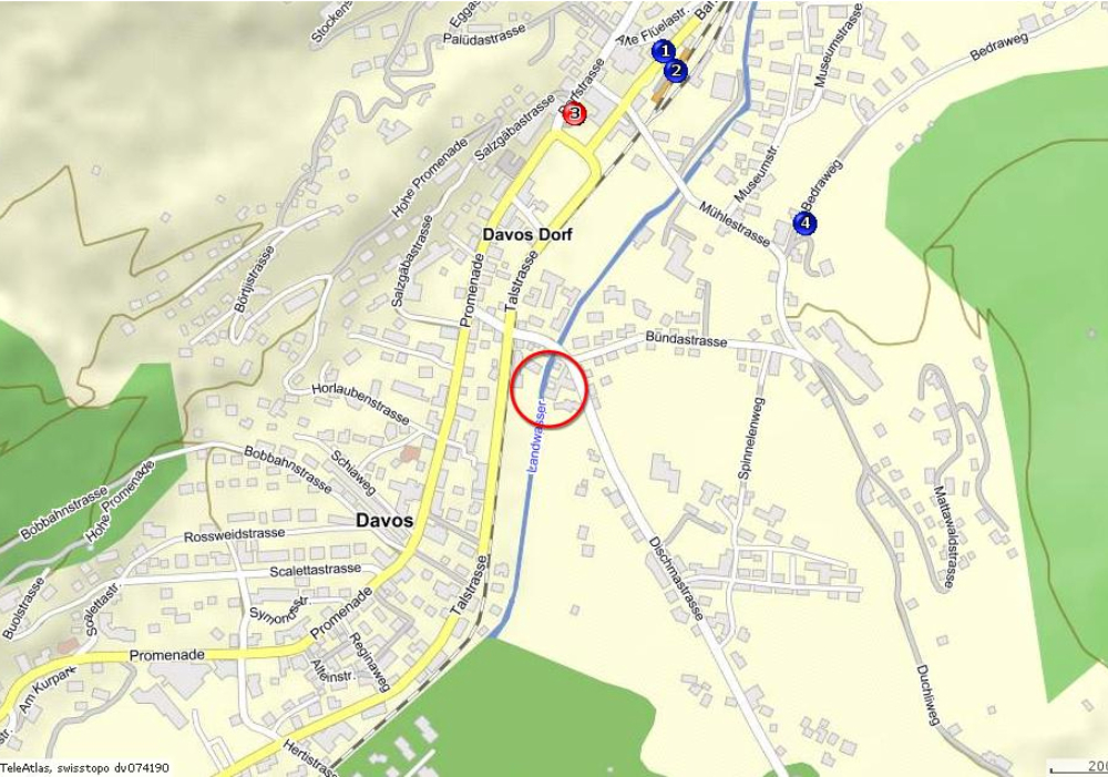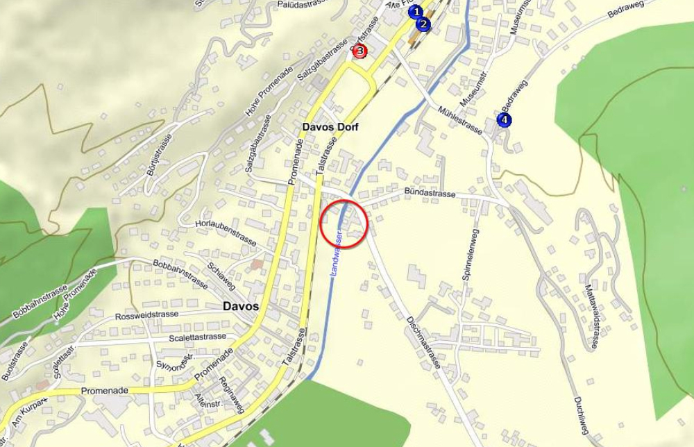 Die attraktive Wohnung liegt im Hochparterre eines Mehrfamilien-hauses neben der Landwasser in Davos Dorf. GrundrissDie gepflegte Wohnung bietet vier Einzelbetten in zwei vom Wohnraum abgetrennten Zimmern (wovon eines abschliessbar mittels Faltwand) .