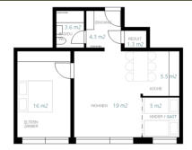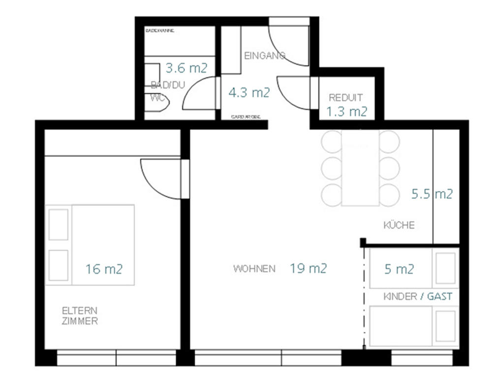 Die attraktive Wohnung liegt im Hochparterre eines Mehrfamilienhauses neben der Landwasser in Davos Dorf. GrundrissDie gepflegte Wohnung bietet vier Einzelbetten in zwei vom Wohnraum abgetrennten Zimmern (wovon eines abschliessbar mittels Faltwand) .